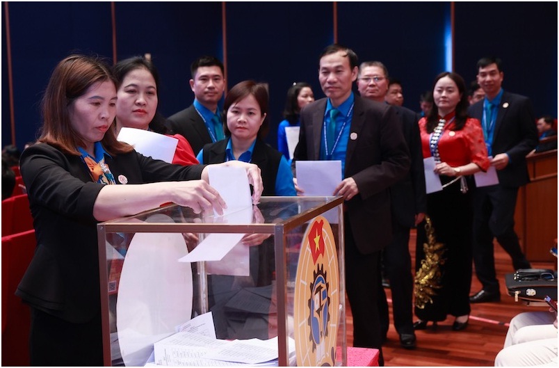 Các đại biểu bỏ phiếu bầu Ban Chấp hành Tổng Liên đoàn Lao động Việt Nam khóa XIII. Ảnh: Hải Nguyễn
