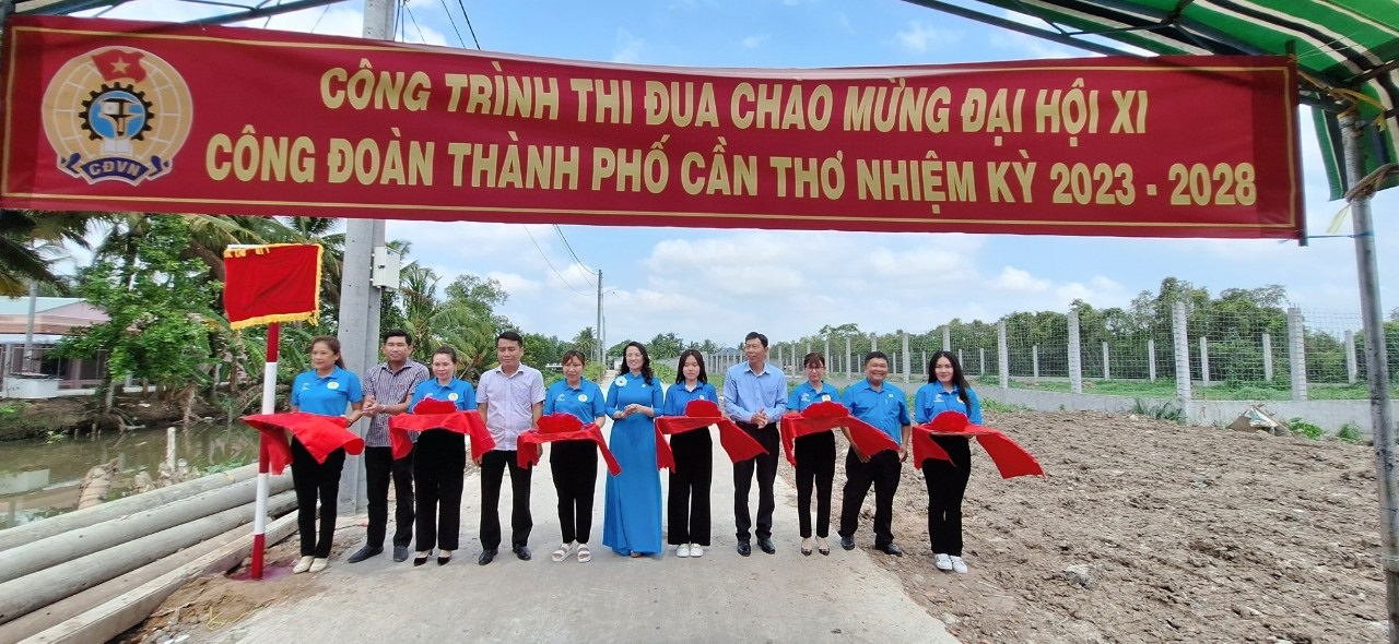 Cắt băng khánh thành tuyến giao thông cặp rạch ông Dựa. Ảnh: LĐLĐ TP Cần Thơ