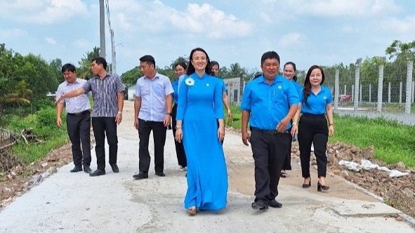 LĐLĐ TP Cần Thơ cùng địa phương đi trên tuyến đường giao thông cặp rạch ông Dựa. Ảnh: LĐLĐ TP Cần Thơ