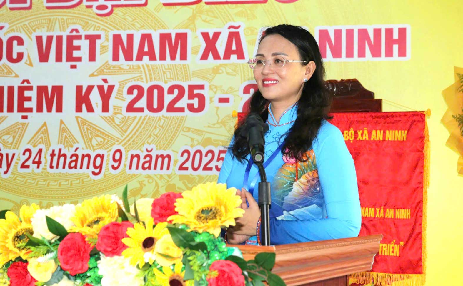 Phát biểu chỉ đạo tại Đại hội, bà Lê Thị Sương Mai - Ủy viên Ban Chấp hành Tổng LĐLĐ Việt Nam, Thành ủy viên, Phó Chủ tịch Ủy ban MTTQ Việt Nam thành phố, Chủ tịch LĐLĐ TP Cần Thơ - ghi nhận và biểu dương MTTQ Việt Nam xã An Ninh đã phát huy tốt vai trò trung tâm đoàn kết, tập hợp sức mạnh toàn dân, góp phần quan trọng trong phát triển kinh tế - xã hội, giữ vững an ninh chính trị, trật tự an toàn xã hội, xây dựng nông thôn mới và đô thị văn minh.