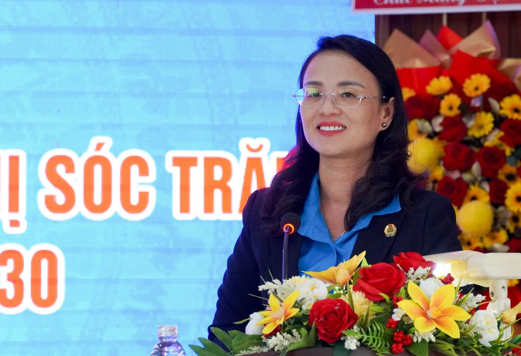 Phát biểu chỉ đạo Đại hội, bà Lê Thị Sương Mai đánh giá cao những thành tích đạt được của CĐCS Công ty cổ phần Công trình đô thị Sóc Trăng. Bà nhấn mạnh nhiệm vụ trọng tâm của nhiệm kỳ mới là tiếp tục phát huy vai trò đại diện, bảo vệ quyền lợi đoàn viên, NLĐ; duy trì quan hệ lao động hài hòa, tiến bộ; chủ động tham gia xây dựng các quy chế và Thỏa ước lao động tập thể thực chất, mang lại lợi ích thiết thực cho đoàn viên.