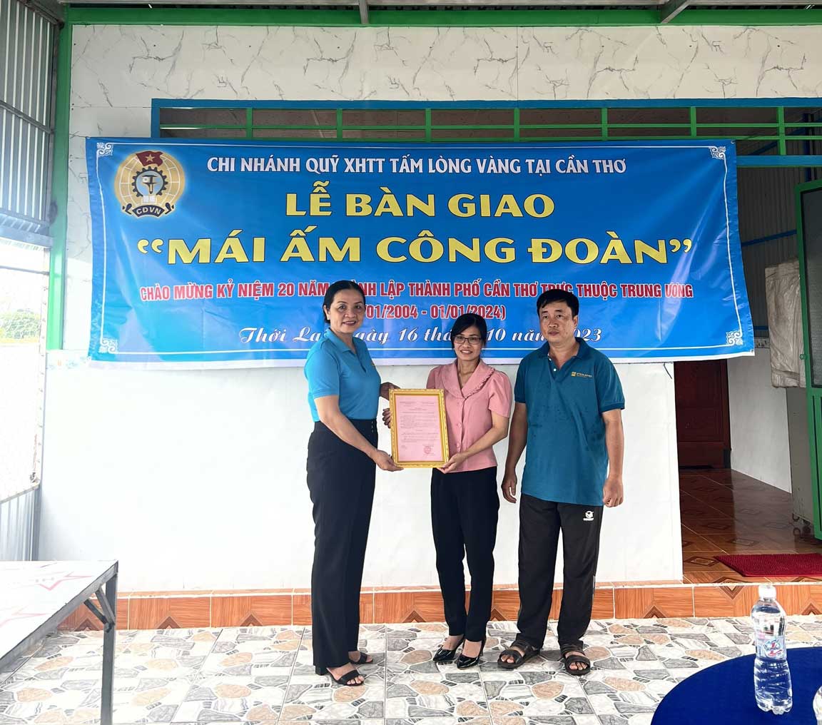 Tham dự lễ bàn giao có Phó Chủ tịch thường trực LĐLĐ TP Cần Thơ Huỳnh Thị Hiền, Chủ tịch LĐLĐ huyện Thới Lai Phan Thanh Sang.