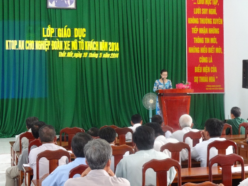 Sáng ngày 19 tháng 05 năm 2014 tại hội trường Trung tâm bồi dưỡng chính trị quận Thốt Nốt đã diễn ra lễ khai giảng lớp bồi dưỡng kiến thức quốc phòng – an ninh cho đoàn viên Nghiệp đoàn xe Moto khách phường Thốt Nốt.