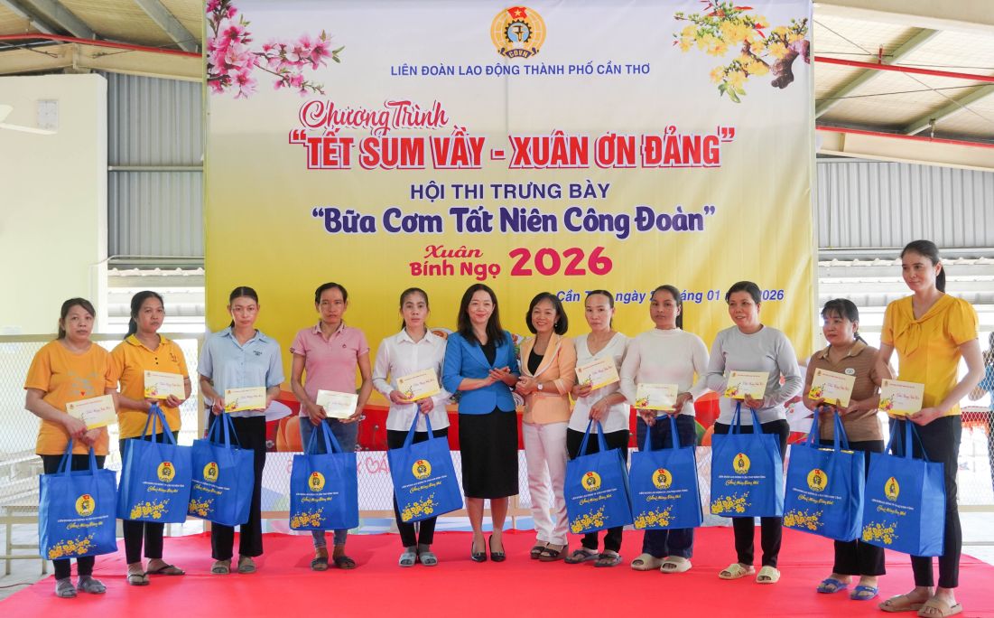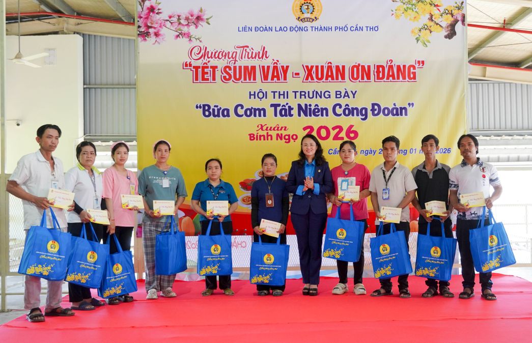 Ngày 29.1, Ban Thường vụ Liên đoàn Lao động (LĐLĐ) TP Cần Thơ tổ chức thăm hỏi, chúc Tết đoàn viên, công nhân lao động và Hội thi trưng bày “Bữa cơm tất niên Công đoàn” tại Công ty TNHH Jiazhi – Chi nhánh Sóc Trăng. Đây là một trong chuỗi hoạt động thuộc Chương trình “Tết sum vầy – Xuân ơn Đảng” năm 2026.