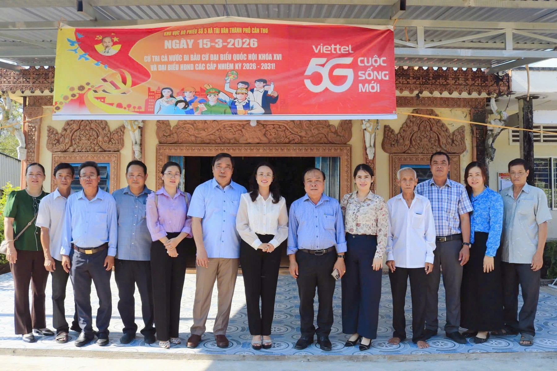 Đoàn công tác LĐLĐ TP Cần Thơ kiểm tra điểm bầu cử trên địa bàn xã Liêu Tú. Ảnh: LĐLĐ TP Cần Thơ