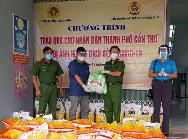 Chương trình đặc biệt này do Công an tỉnh An Giang phối hợp với Ban Thường vụ Liên đoàn Lao động TP. Cần Thơ, kết nối với các địa phương để thực hiện. 900 suất quà được trao cho các quận, huyện (các quận: Ninh Kiều, Bình Thủy, Cái Răng, Ô Môn, Thốt Nốt và các huyện: Thới Lai, Cờ Đỏ, Phong Điền, Vĩnh Thạnh), mỗi phần quà bao gồm: 10 kg gạo, 01 thùng mì; 02 chai nước tương và dầu ăn, block 10 hộp cá mòi, 05 kg đường và 05 hộp sữa đặc có đường.