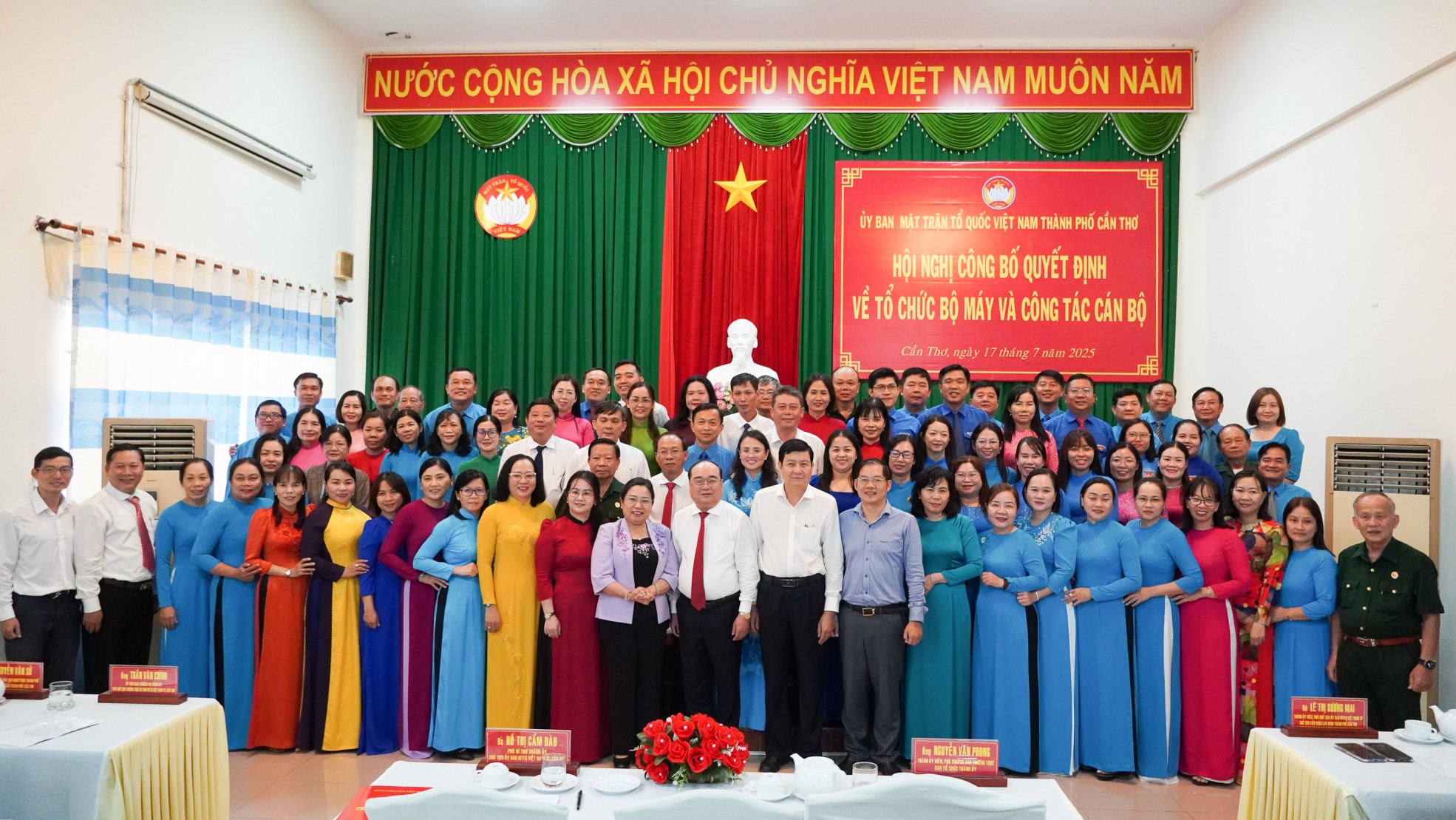 Chiều 17.7, Ban Thường trực Ủy ban Mặt trận Tổ quốc (MTTQ) Việt Nam TP Cần Thơ tổ chức Hội nghị công bố Quyết định về tổ chức bộ máy và công tác cán bộ của Cơ quan Ủy ban MTTQ Việt Nam TP.