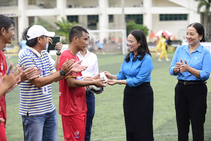 Ngay sau khi hiệp 1 kết thúc, bà Lê Thị Sương Mai - chủ tịch Liên đoàn Lao động TP Cần Thơ - đã lập tức trao thưởng ngay 8 triệu đồng cho 4 bàn thắng đội ghi được.