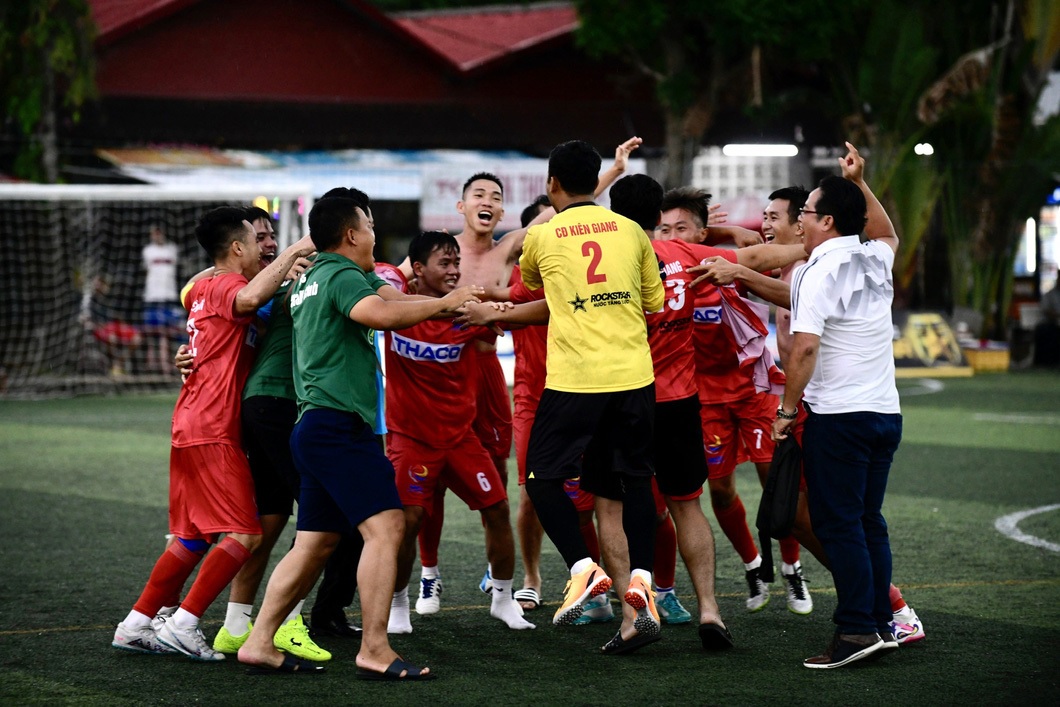 Chiến thắng vất vả nhưng xứng đáng khiến các cầu thủ Công đoàn Kiên Giang ăn mừng đầy phấn khích. Còn ở phần sân bên kia, nỗi buồn tràn ngập với các cầu thủ Công đoàn An Giang.