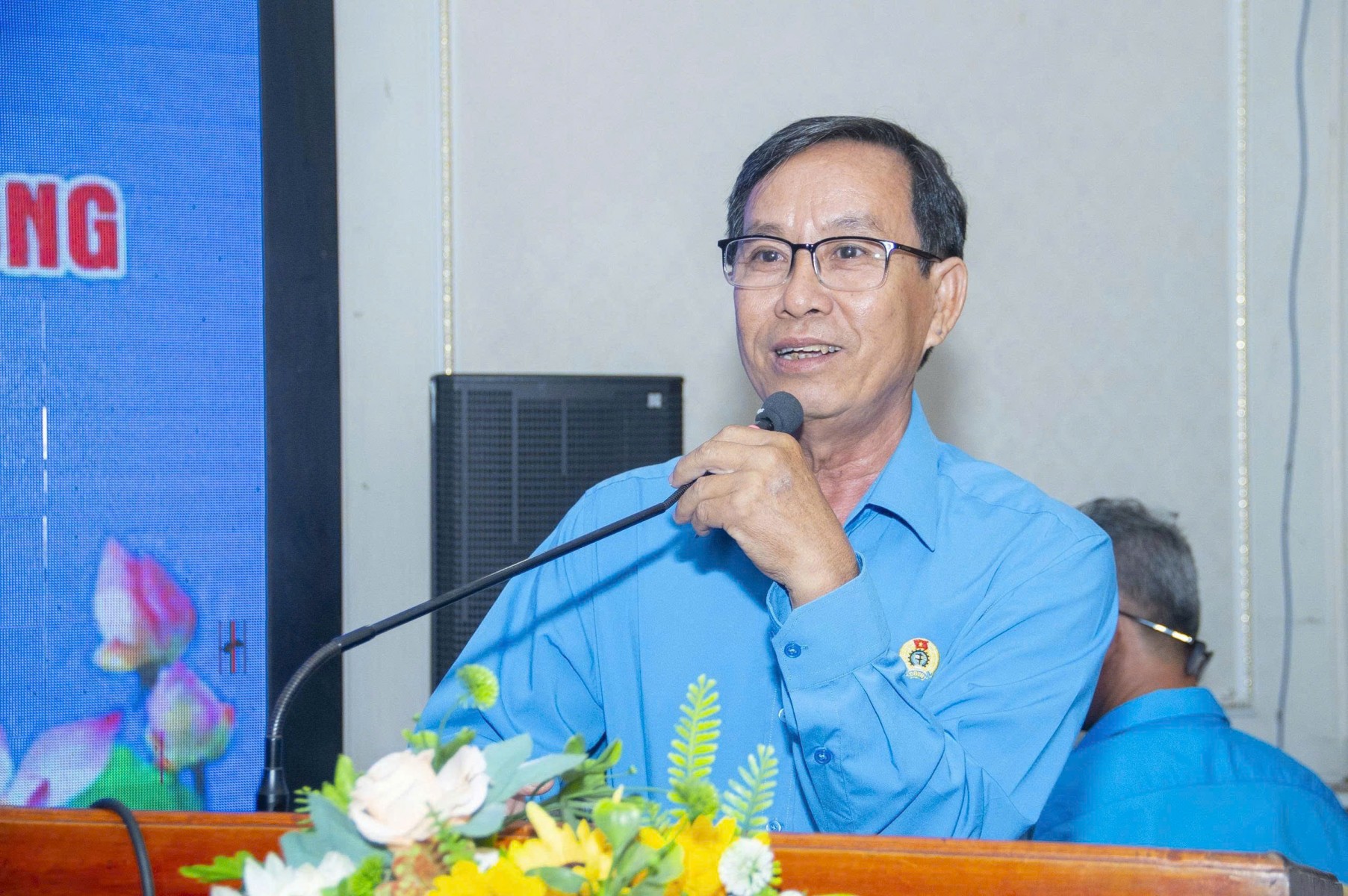 Ông Kha Văn Tám - Chủ tịch Liên đoàn Lao động tỉnh Nghệ An phát biểu tại hội thảo. Ảnh: Duy Chương