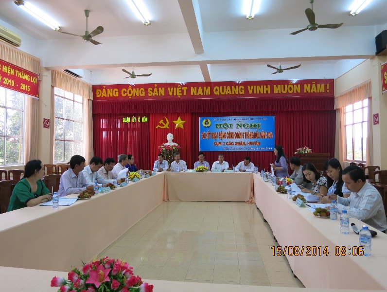Ngày 15 tháng 8 năm 2014, tại hội trường Quận ủy Ô Môn,Cụm Thi đua 1, các Liên đoàn Lao động khối quận, huyện tổ chức Hội nghị sơ kết hoạt động Công đoàn và phong trào CNVCLĐ 6 tháng đầu năm 2014. Tham dự hội nghị có đồng chí Lê Xuân Trị, phó Chủ tịch Liên đoàn Lao động thành phố Cần Thơ, đồng chí Nguyễn Tòng Nhiệm, Phó Bí thư Thường trực quận ủy Ô Môn, đồng chí Ngô Thị Út The – Phó Trưởng Ban Dân vận quận ủy; cùng các đồng chí là Chủ tịch, Phó Chủ tịch Liên đoàn Lao động các quận, huyện.