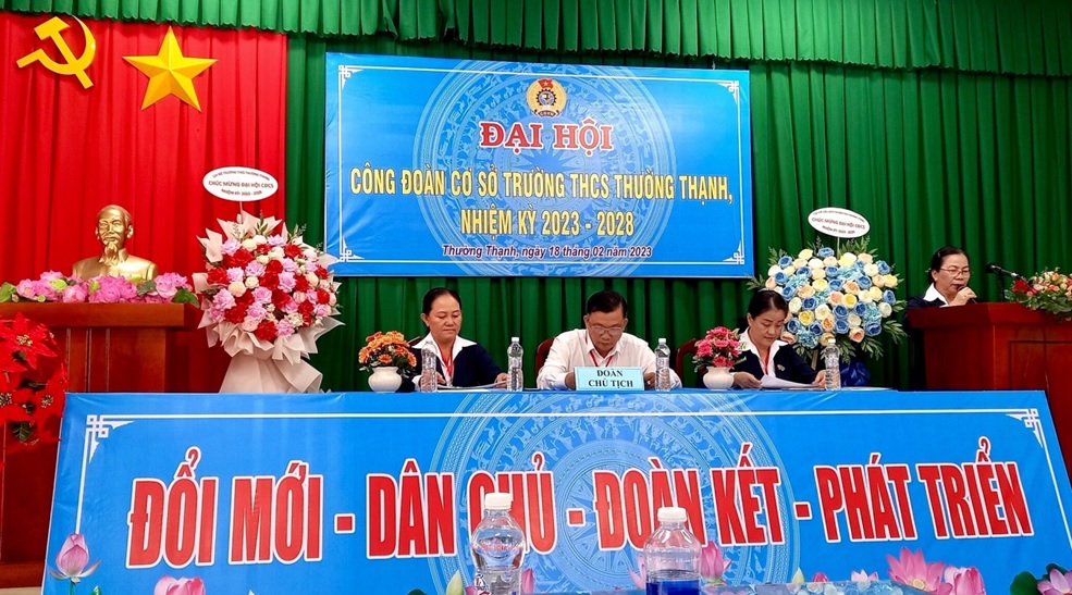 Với khẩu hiệu hành động “Đổi mới, dân chủ, đoàn kết, phát triển”, Công đoàn cơ sở Trường Trung học cơ sở Thường Thạnh quyết tâm phấn đấu thực hiện thắng lợi các mục tiêu, nhiệm vụ của tổ chức công đoàn, góp phần xây dựng tổ chức công đoàn vững mạnh, thực hiện thắng lợi nghị quyết đại hội đề ra và các nhiệm vụ của đơn vị.
