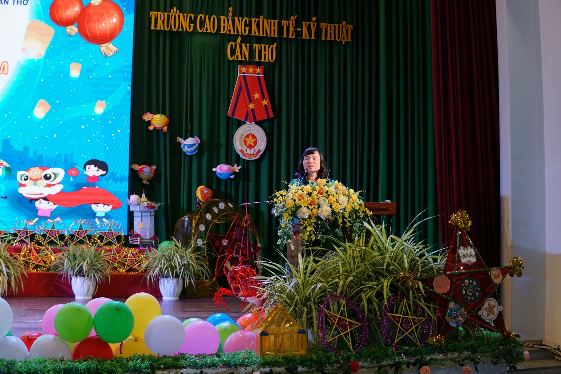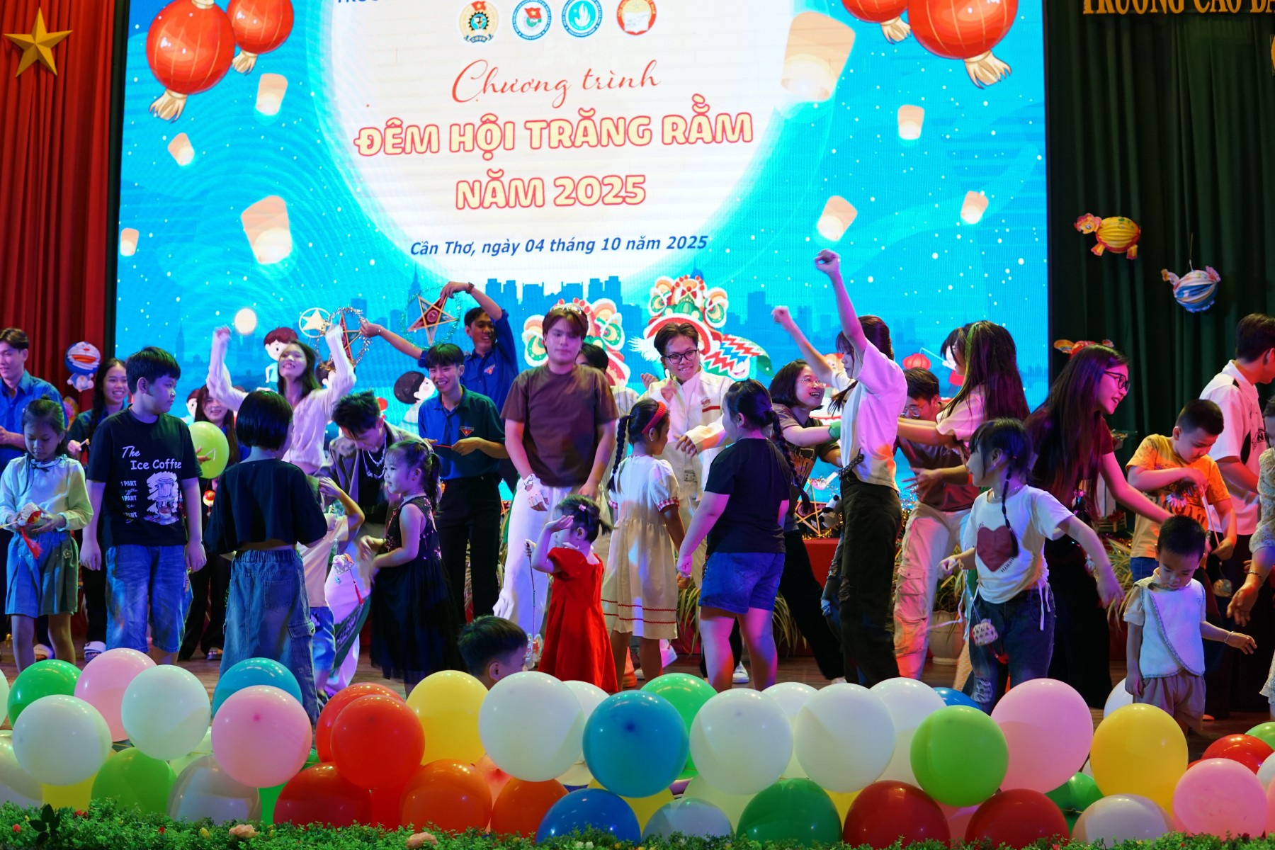 Hòa trong không khí rộn ràng của Tết Trung thu – Tết của thiếu nhi, vào lúc 18 giờ 30 phút ngày 4 tháng 10 năm 2025, Công đoàn Trường Cao đẳng Kinh tế - Kỹ thuật Cần Thơ kết hợp cùng với Đoàn thanh niên, Hội Sinh viên đã tổ chức chương trình “ĐÊM HỘI TRĂNG RẰM 2025” cho các cháu thiếu niên, nhi đồng là con của cán bộ, viên chức và người lao động trong nhà trường. Đến tham dự chương trình có cô Trần Thị Thúy Hồng, Phó Chủ tịch Công đoàn trường, các thầy cô lãnh đạo các đơn vị và đặc biệt là sư tham dự của gần 80 cháu thiếu nhi con của cán bộ viên chức trong nhà trường.