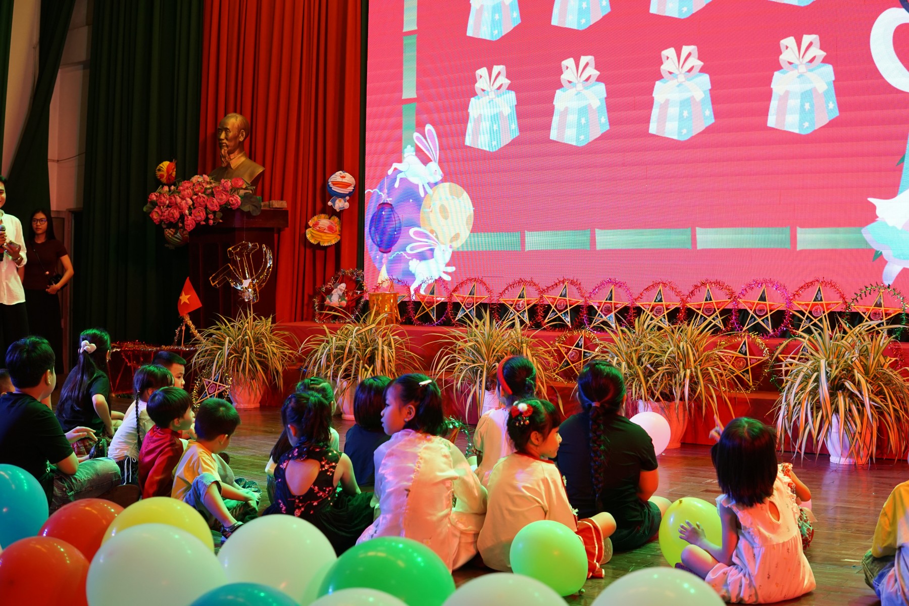 Trong khuôn khổ chương trình, Công đoàn nhà trường đã tổ chức nhiều hoạt động phong phú, hấp dẫn như: rước đèn phá cỗ cùng chị Hằng và chú Cuội, tạo không khí náo nhiệt, phấn khởi; biểu diễn các tiết mục văn nghệ do chính các em nhỏ thể hiện; tham gia các trò chơi dân gian, đố vui có thưởng, giúp các em vừa học vừa chơi; phát quà và bánh Trung thu – những món quà ngọt ngào mang đậm tình yêu thương. Không khí buổi lễ diễn ra ấm áp, vui tươi, tràn đầy tiếng cười. Các em nhỏ được hòa mình vào thế giới tuổi thơ đầy sắc màu, trong khi phụ huynh có dịp cùng nhau chia sẻ niềm vui và gắn kết thêm tình cảm gia đình, đồng nghiệp.