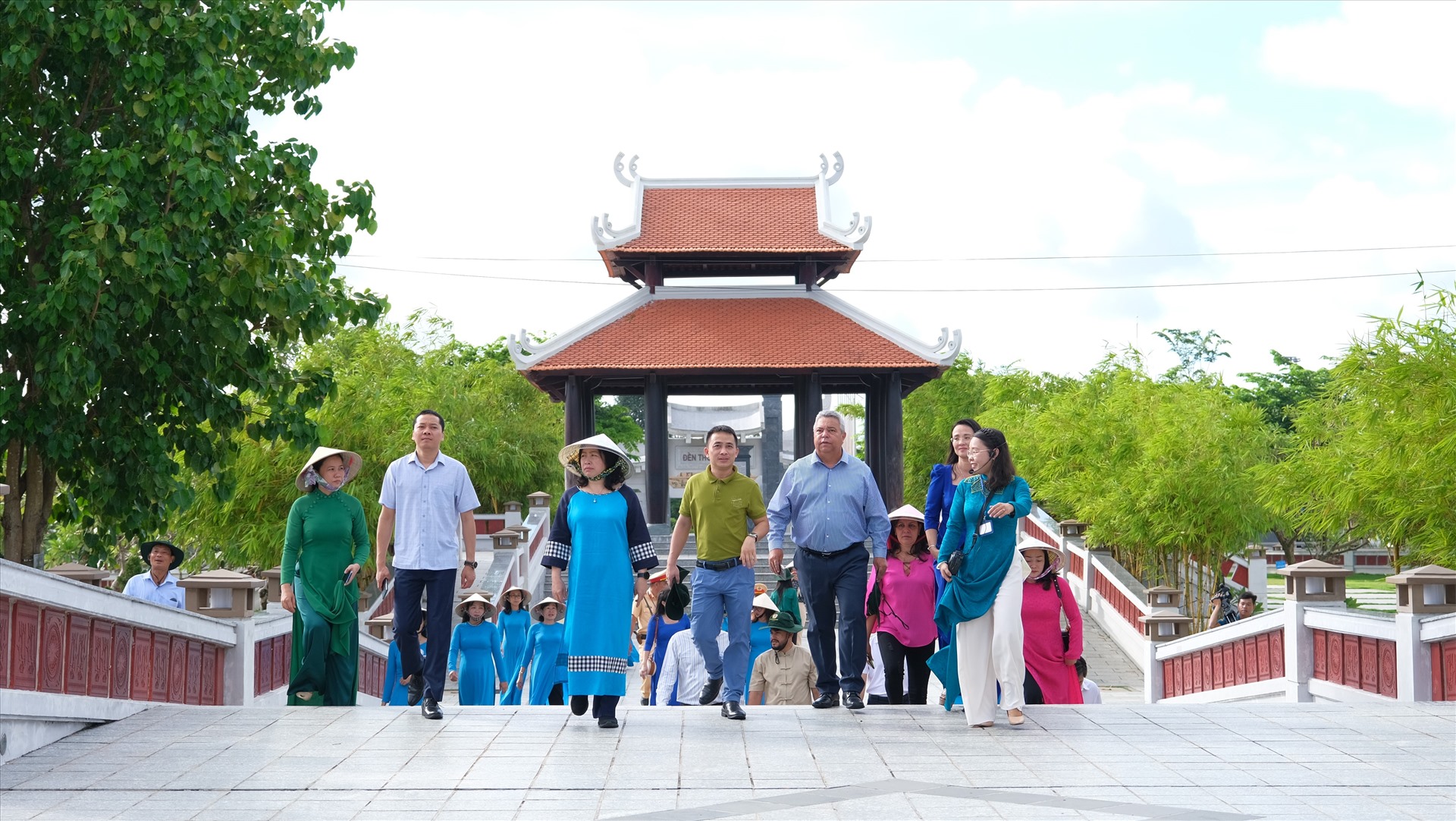 Đoàn công tác chụp ảnh lưu niệm tại Đền thờ Vua Hùng, TP Cần Thơ.