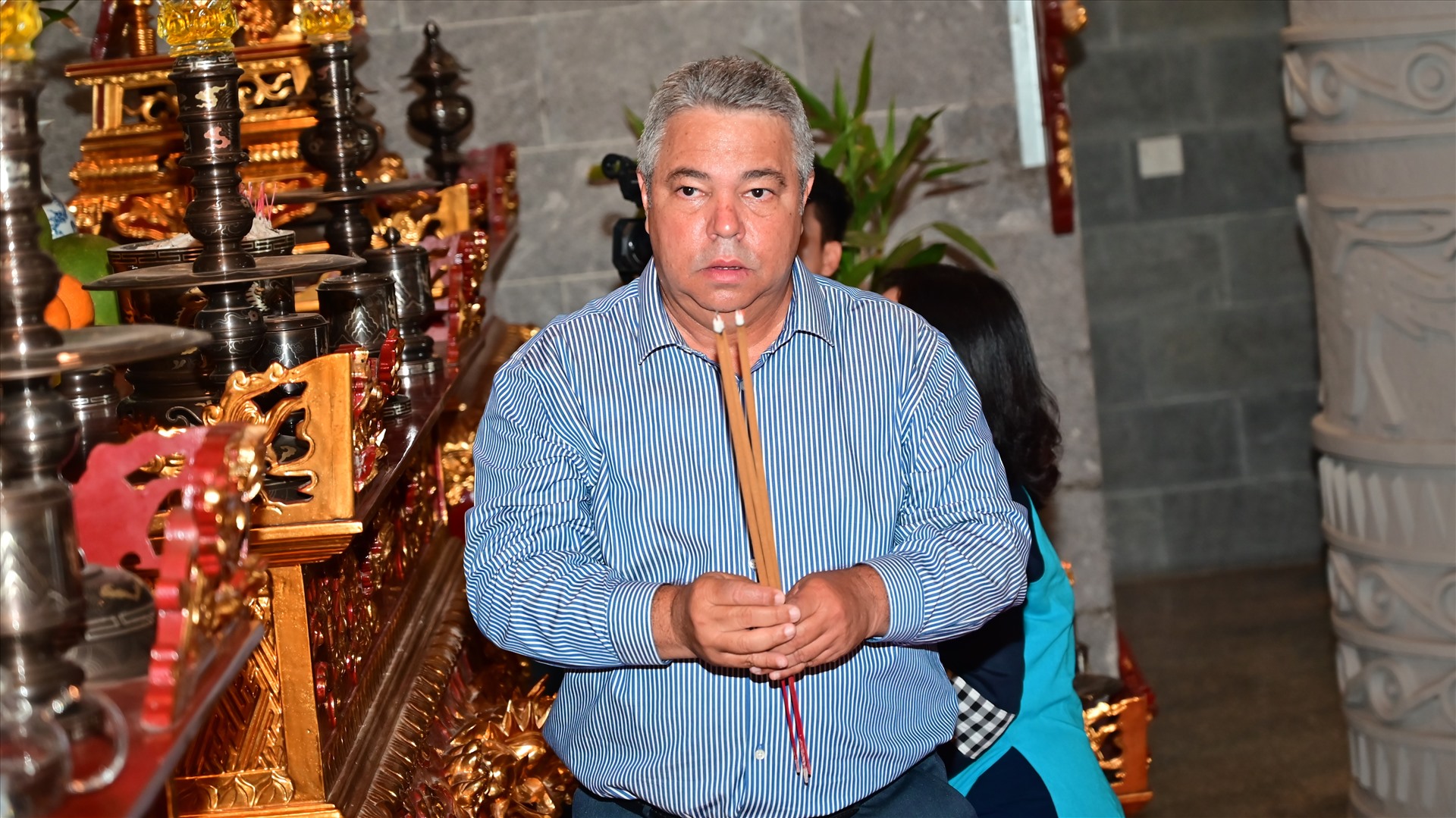 Ông Ulises Guilarte de Nacimiento giao lưu cùng các vị sư trong chùa.