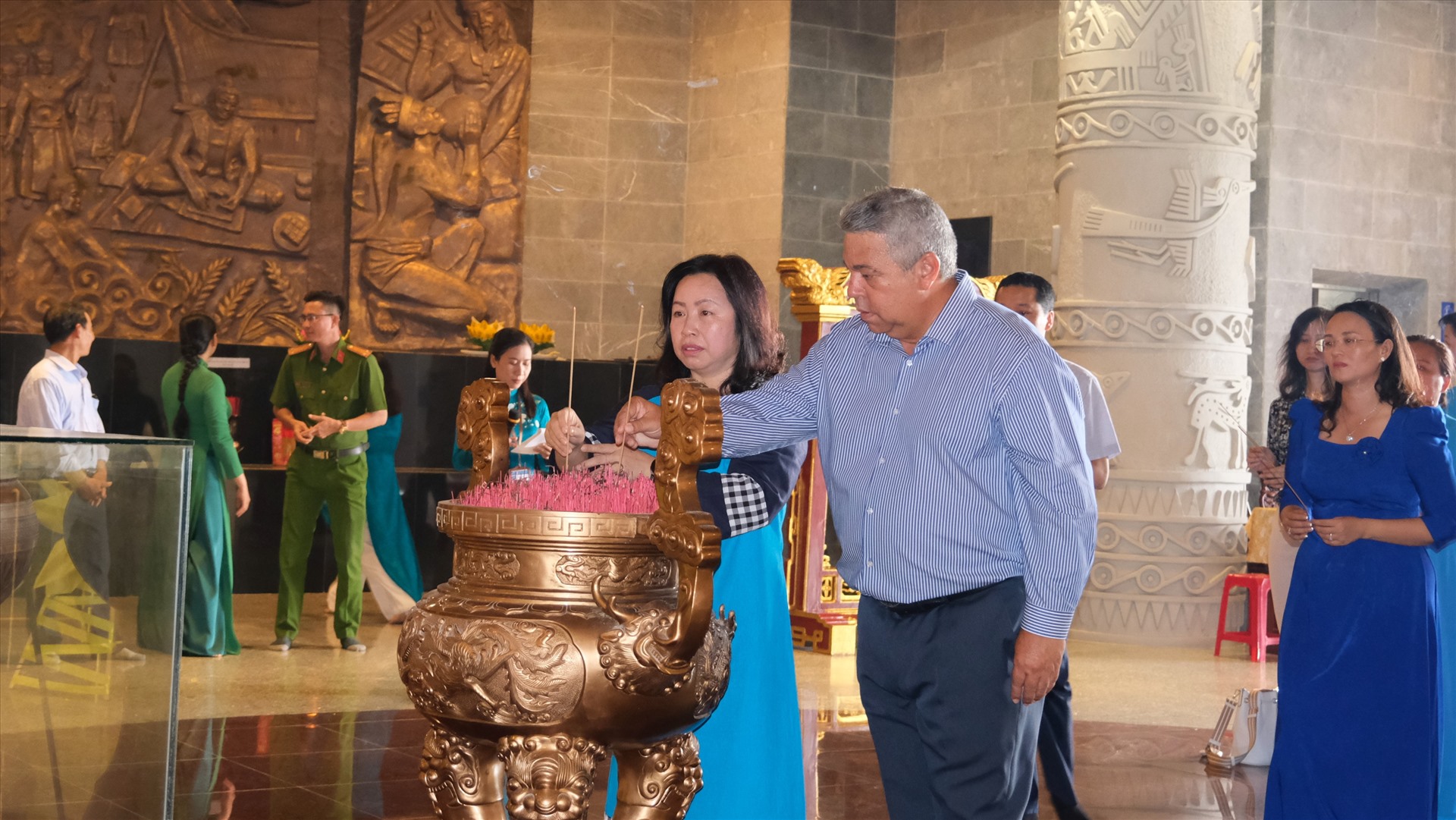 Phó Chủ tịch Tổng LĐLĐ Việt Nam Thái Thu Xương cùng ông Ulises Guilarte de Nacimiento tham quan đến thờ vua Hùng.
