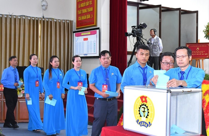 Đại biểu tiến hành bầu Ban Chấp hành LĐLĐ TP Cần Thơ nhiệm kỳ 2023-2028. Ảnh: Trấn Giang.