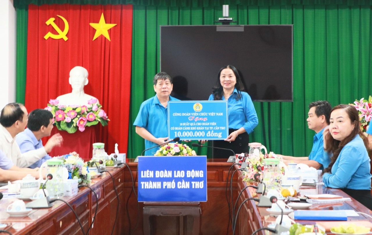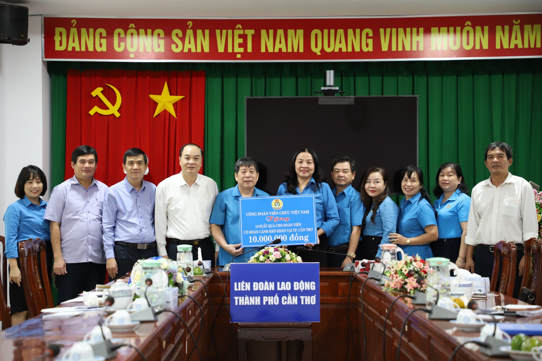 Nhân dịp này, Công đoàn Viên chức Việt Nam đã trao tặng cho CNVCLĐ có hoàn cảnh khó khăn thuộc Liên đoàn Lao động thành phố Cần Thơ 10 suất quà, mỗi suất trị giá 1.000.000 đồng.