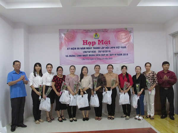 Trong dịp này, Ban Chấp hành Công đoàn cơ quan Liên đoàn Lao động thành phố đã tổ chức mừng sinh nhật quí III và quí IV cho 25 đoàn viên công đoàn tại cơ quan và các đơn vị sự nghiệp trực thuộc. Đây cũng là hoạt động thường xuyên của Công đoàn cơ quan nhằm chăm lo về mặt tinh thần cho đoàn viên. Dịp này, Ban Chấp hành Công đoàn tặng cho mỗi đoàn viên 01 phần quà trị giá 200.000 đồng./.