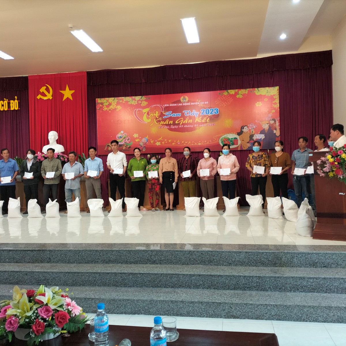 Ngày 05/01/2023, Liên đoàn Lao động huyện Cờ Đỏ tổ chức “Tết Sum vầy – Xuân gắn kết” năm 2023. Đến dự có đồng chí Đoàn Văn Dũng - Phó Chủ tịch Liên đoàn Lao động thành phố Cần Thơ, đồng chí Võ Minh Chính – Phó Chủ tịch Thường trực UBMTTQ Việt Nam huyện Cờ Đỏ trao quà Tết Quỹ Mão năm 2023 cho đoàn viên có hoàn cảnh khó khăn.