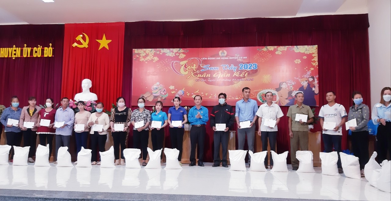 Tại buổi lễ, Liên đoàn Lao động huyện Cờ Đỏ đã tặng 210 phần quà cho đoàn viên có hoàn cảnh khó khăn trên địa bàn huyện, mỗi phần quà trị giá khoảng 800.000 đồng, (gồm: 500.000 đồng tiền mặt, cùng với gạo, nhu yếu phẩm và bộ nồi inox) để giúp cho đoàn viên có hoàn cảnh khó khăn được vui xuân, đón Tết. Quà tặng cho đoàn viên có hoàn cảnh khó khăn được trích từ nguồn tài chính công đoàn thành phố Cần Thơ và nguồn xã hội hóa do Liên đoàn Lao động huyện vận động.