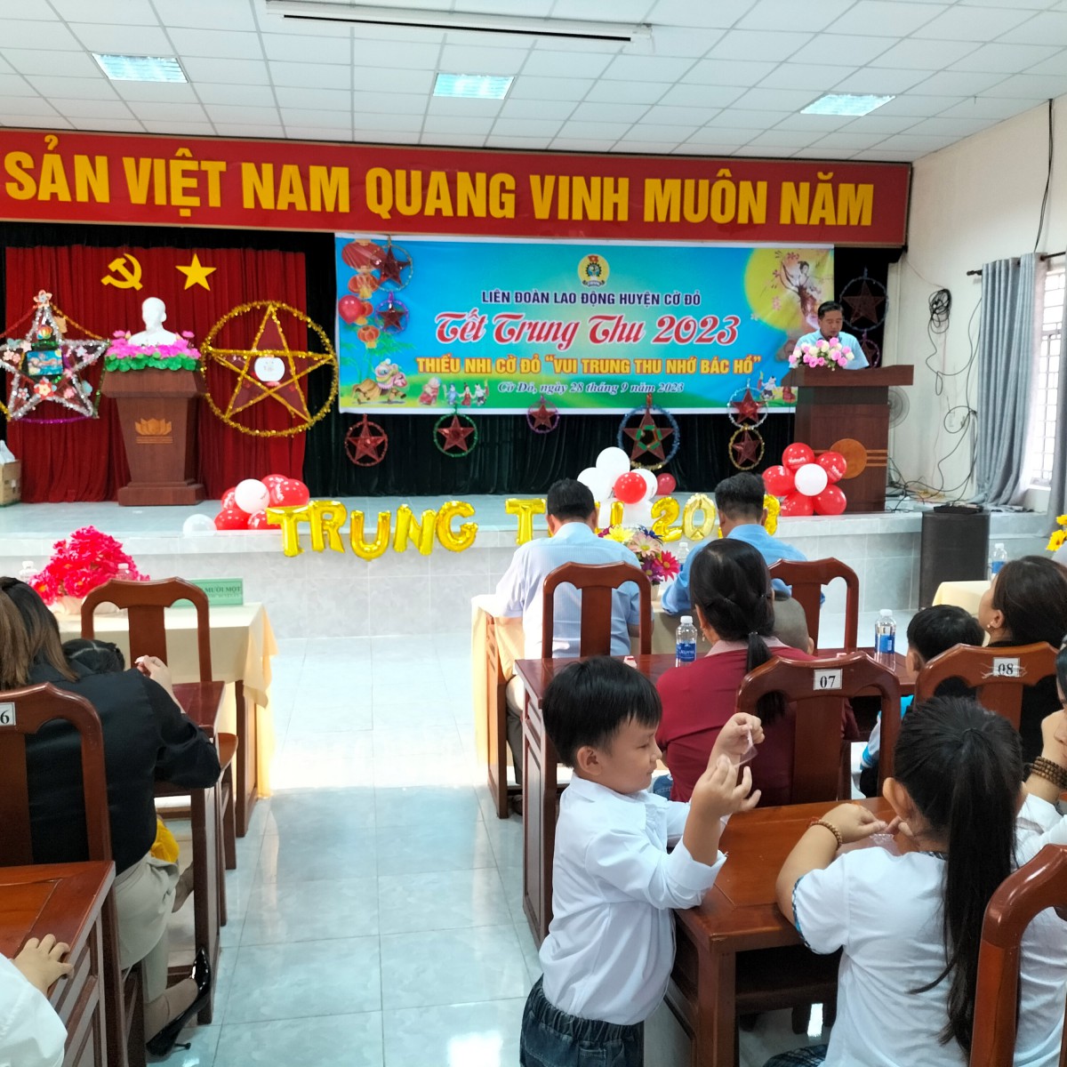 Ngày 28/9/2023, Liên đoàn Lao động huyện Cờ Đỏ tổ chức Tết Trung thu, tặng quà cho các cháu thiếu nhi con của cán bộ, đoàn viên các công đoàn cơ sở phòng, ban, ngành, đoàn thể huyện.