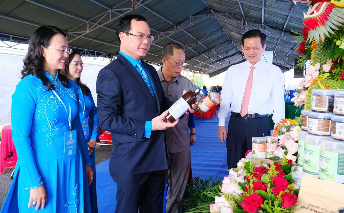 Ông Nguyễn Đình Khang - Ủy viên Ban Chấp hành Trung ương Đảng, Phó Chủ tịch Ủy ban Trung ương MTTQ Việt Nam, Chủ tịch Tổng LĐLĐ Việt Nam tham quan các gian hàng trưng bày. Ảnh: Mỹ Ly