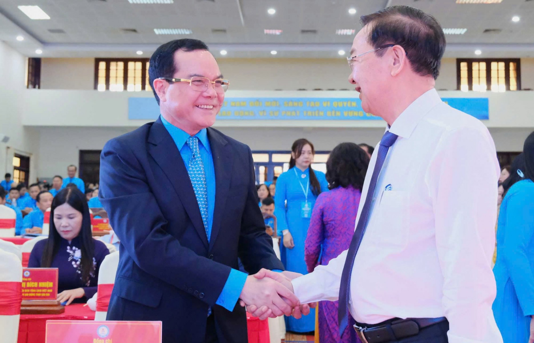 Ông Nguyễn Đình Khang - Ủy viên Ban Chấp hành Trung ương Đảng, Phó Chủ tịch Ủy ban Trung ương MTTQ Việt Nam, Chủ tịch Tổng LĐLĐ Việt Nam (bên phải) dự Đại hội Công đoàn TP Cần Thơ lần thứ I. Ảnh: Mỹ Ly