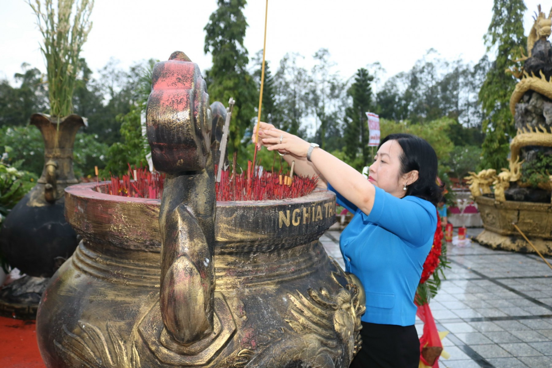 Phó Chủ tịch Thường trực Tổng LĐLĐ Việt Nam Thái Thu Xương tri ân các Anh hùng, liệt sĩ tại Cần Thơ. Ảnh: Anh Khoa