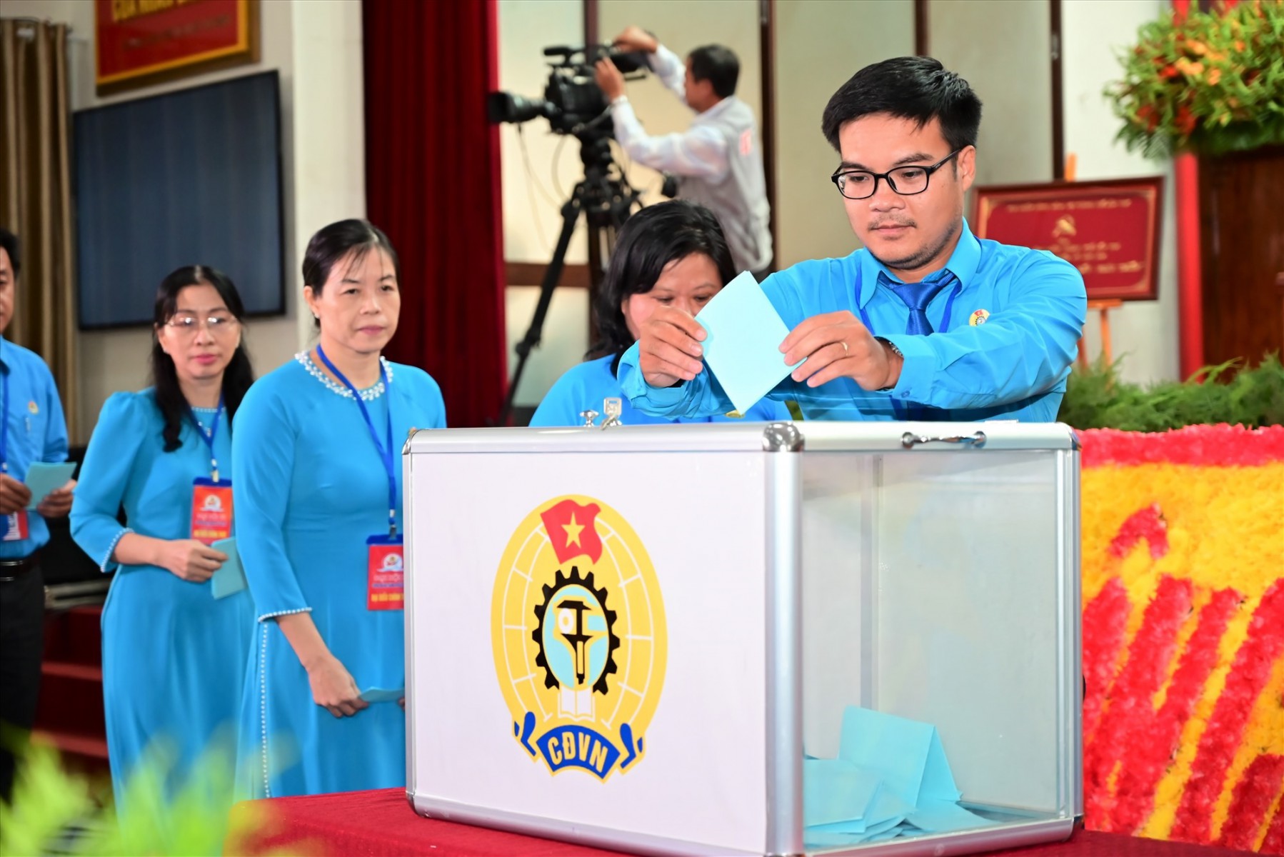 Đại biểu tiến hành bầu Ban Chấp hành LĐLĐ TP Cần Thơ nhiệm kỳ 2023-2028. Ảnh: Đạt Phan