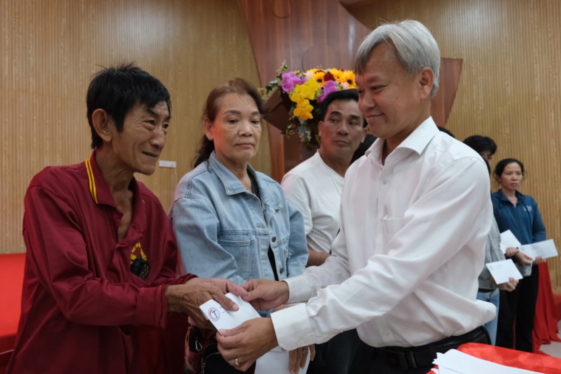 Bà Hồ Thị Cẩm Đào - Ủy viên Đoàn Chủ tịch Ủy ban Trung ương MTTQ Việt Nam, Phó Bí thư Thành ủy, Chủ tịch MTTQ Việt Nam TP Cần Thơ - trao quà cho công nhân. Ảnh: LĐLĐ TP Cần Thơ