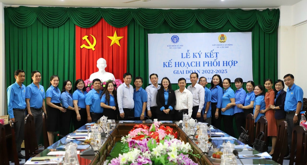 Từ đó, LĐLĐ TP Cần Thơ và Bảo hiểm xã hội TP tổ chức Lễ ký kết chương trình phối hợp tuyên truyền, vận động thực hiện chính sách BHXH, BHYT trong CNVCLĐ giai đoạn 2022 – 2025.
