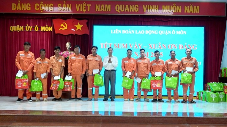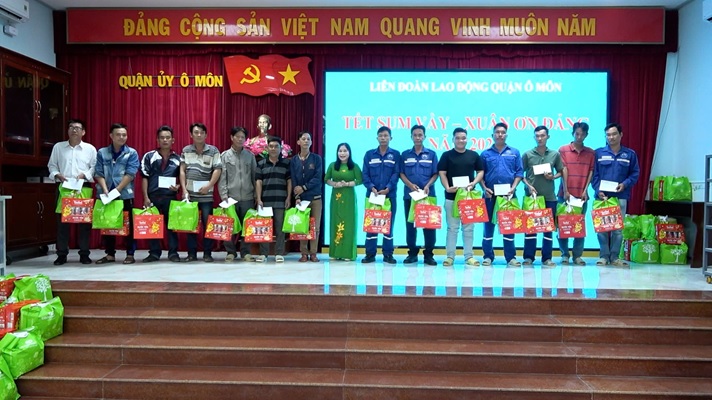 Dịp này, Liên đoàn Lao động quận Ô Môn trao tặng quà Tết cho gần 347 đoàn viên, người lao động có hoàn cảnh khó khăn, mỗi phần quà trị giá 500 nghìn đồng, với tổng trị giá thành tiền 173,5 triệu đồng. Kết quả thực hiện hoạt động chăm lo Tết Nguyên đán Ất Tỵ 2025. Liên đoàn Lao động quận Ô Môn, các công ty, Công đoàn cơ sở trực thuộc đã trao tặng trên 4.555 phần quà, với tổng số tiền hơn 1.859,1 triệu đồng, chăm lo cho đoàn viên và người lao động có hoàn cảnh khó khăn. Trong đó, có 569 phần quà do Tổng Liên đoàn Lao động Việt Nam và Liên đoàn Lao động thành phố Cần Thơ tài trợ./.
