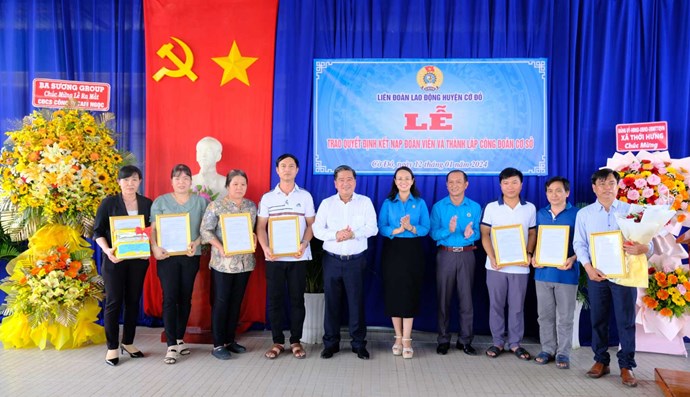 Thiết thực chào mừng kỷ niệm 94 năm Ngày thành lập Đảng Cộng sản Việt Nam và mừng Xuân Giáp Thìn năm 2024, ngày 12.1, Liên đoàn Lao động (LĐLĐ) huyện Cờ Đỏ tổ chức Lễ trao Quyết định kết nạp đoàn viên, thành lập Công đoàn cơ sở (CĐCS) và Lễ trao tặng Mái ấm Công đoàn tại huyện Cờ Đỏ.