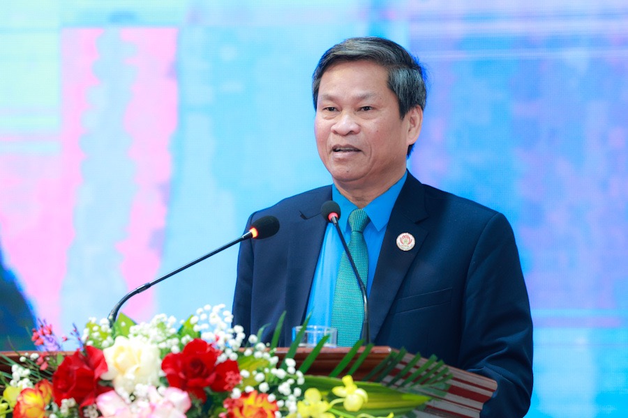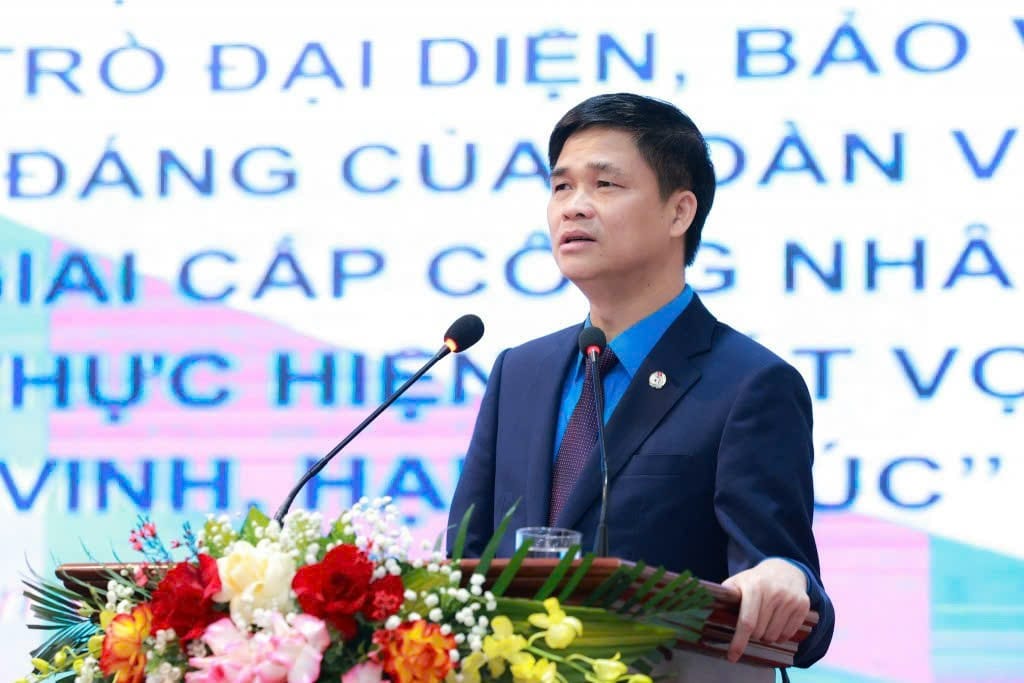 Đồng chí Nguyễn Đình Khang - UVBCH Trung ương Đảng, Chủ tịch Tổng LĐLĐ Việt Nam phát biểu Bế mạc Hội nghị.