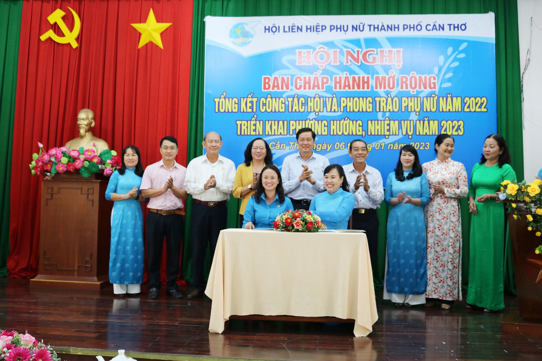 Chiều ngày 06/01/2023, tại Hội trường Hội Liên hiệp Phụ nữ TPCT, Liên đoàn Lao động TPCT và Hội Liên hiệp Phụ nữ TPCT tổ chức Ký kết Chương trình phối hợp về tổ chức các hoạt động trong nữ cán bộ, công chức, viên chức và công nhân lao động, trên địa bàn TPCT, giai đoạn 2022-2027.