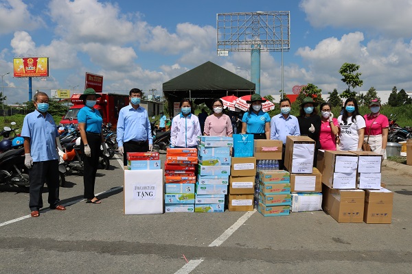 Đoàn công tác thăm và tặng quà chốt trực kiểm soát y tế gần siêu thị Go