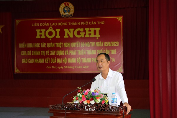 Ngày 30/9/2020, Liên đoàn Lao động thành phố Cần Thơ tổ chức Hội nghị Báo cáo viên Công đoàn tháng 10/2020. Tham dự Hội nghị có hơn 120 đại biểu là Trưởng, Phó ban và cán bộ phong trào các ban chuyên đề; Trưởng, Phó và cán bộ, công chức (đảng viên) các đơn vị trực thuộc Liên đoàn Lao động thành phố; Chủ tịch, Phó Chủ tịch Liên đoàn Lao động quận, huyện; các Công đoàn ngành, Công đoàn Viên chức, Công đoàn các Khu Chế xuất và Công nghiệp Cần Thơ; Chủ tịch, Phó Chủ tịch và đồng chí phụ trách công tác tuyên giáo công đoàn cơ sở trực thuộc Liên đoàn Lao động thành phố.