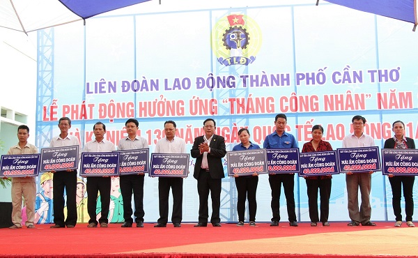 Tại buổi Lễ phát động, LĐLĐ thành phố đã hỗ trợ tiền xây dựng mái ấm Công đoàn cho 10 đoàn viên có khó khăn về nhà ở, mỗi mái ấm trị giá 40 triệu đồng, trao 20 suất học bổng cho học sinh cấp 2,3 là con công nhân lao động vượt khó học giỏi năm học 2015- 2016. mỗi suất trị giá 600.000đ đến 800.000đ, nguồn kinh phí trích từ Qũy “Tấm lòng vàng Công đoàn Cần Thơ”. Ngoài ra, Quỹ Bảo trợ trẻ em nghèo Công đoàn Việt Nam trao 40 suất học bổng cho các cháu là con CNVCLĐ vượt khó học giỏi, mỗi suất học bổng trị giá 500.000đ./.