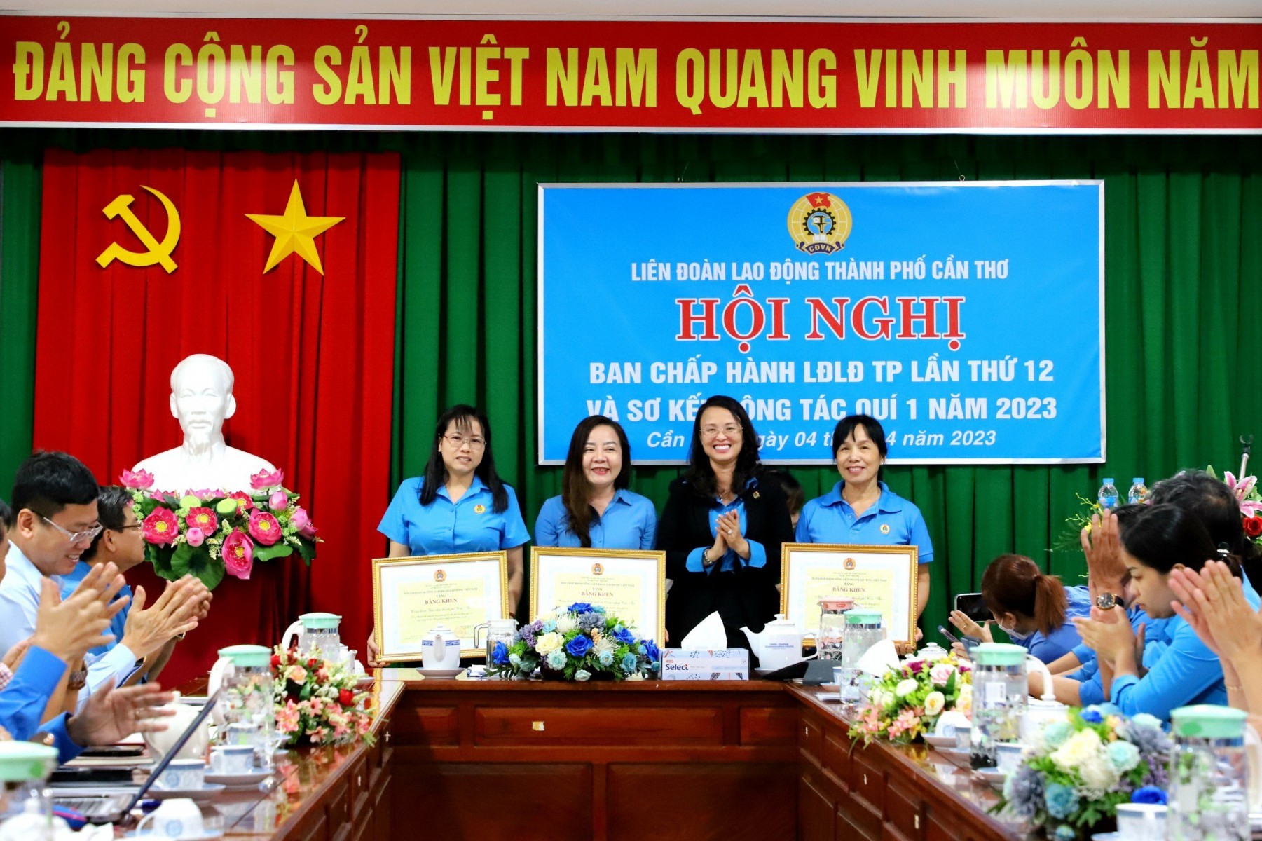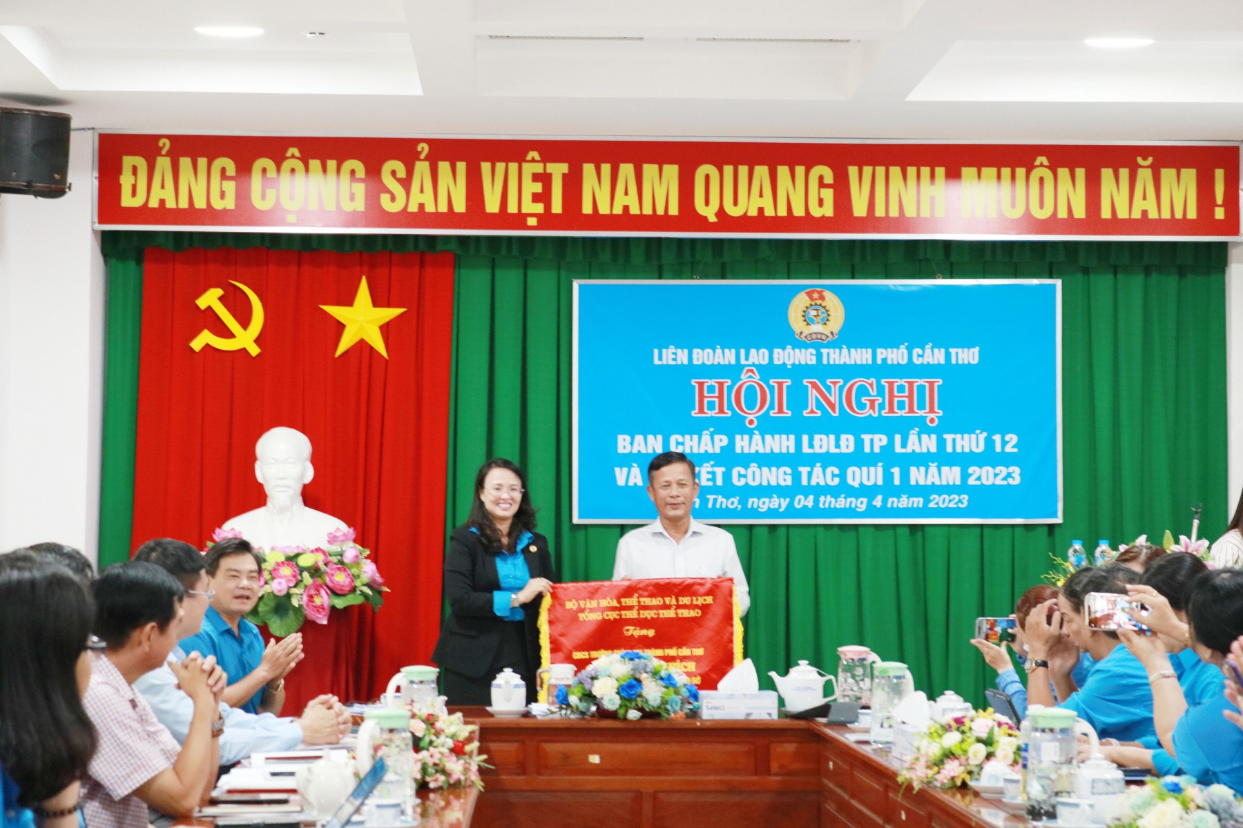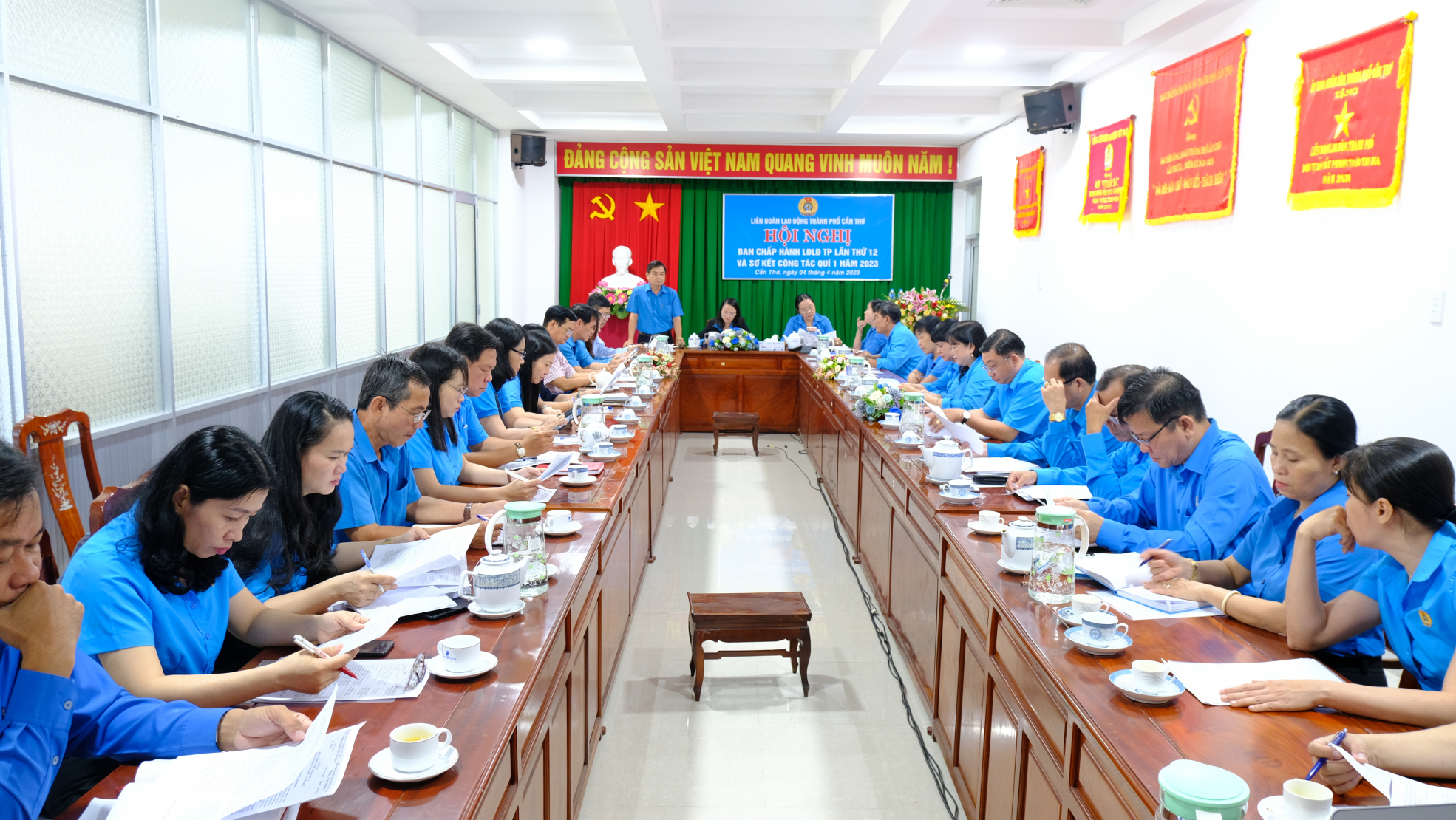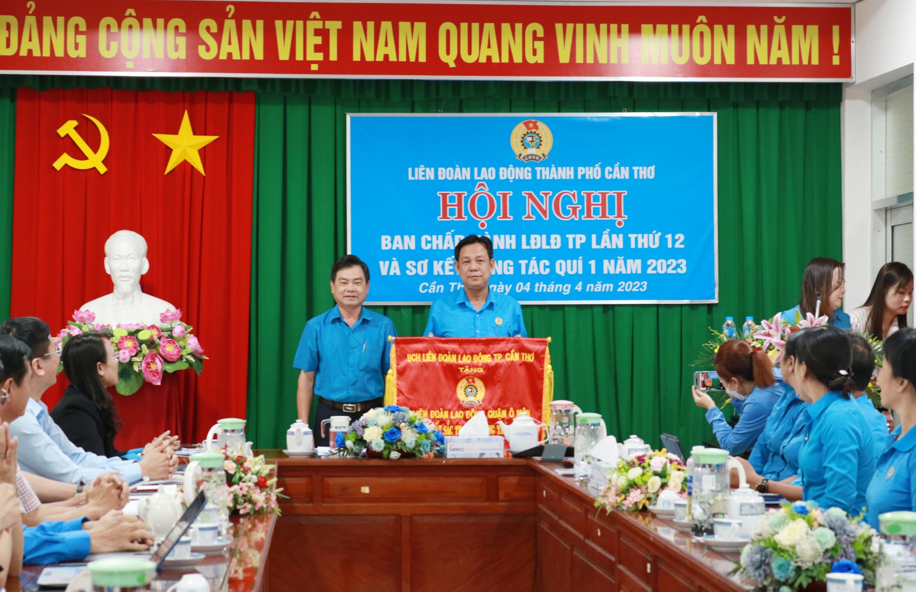 Sáng ngày 04/4/2023, Liên đoàn Lao động thành phố tổ chức Hội nghị Ban Chấp hành lần thứ 12, Khóa X Sơ kết công tác quý I, triển khai nhiệm vụ trọng tâm quý II năm 2023; Lấy ý kiến dự thảo Báo cáo chính trị Công đoàn thành phố Cần Thơ nhiệm kỳ 2018-2023; Giới thiệu nhân sự BCH, BTV, Chủ tịch, Phó Chủ tịch, UBKT, Chủ nhiệm UBKT Khóa XI, nhiệm kỳ 2023-2028. Tập thể Thường trực Liên đoàn Lao động thành phố, chủ trì Hội nghị, cùng với 33 đại biểu là Ủy viên Ban Chấp hành, Ủy viên Kiểm tra Liên đoàn Lao động thành phố Khóa X, nhiệm kỳ 2018-2023 tham dự.
