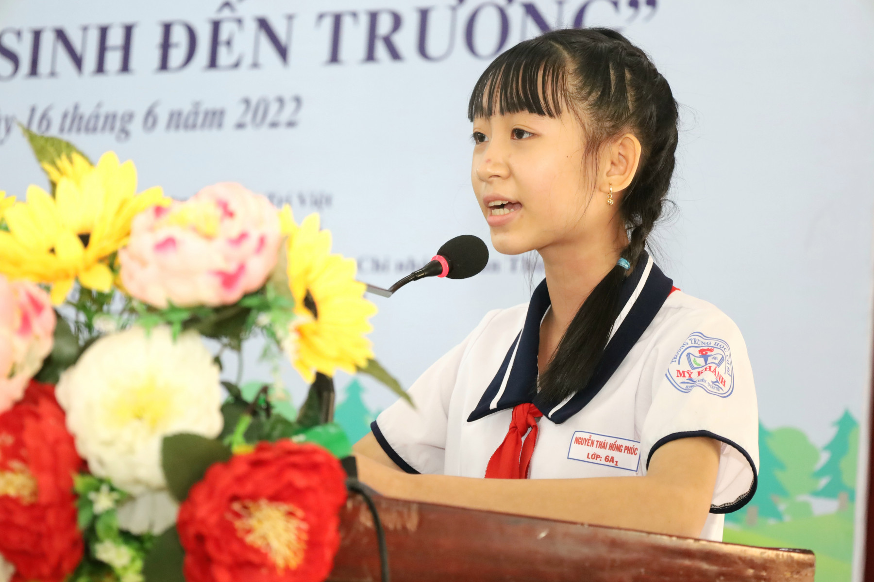 Em Nguyễn Thái Hồng Phúc - Học sinh trường THCS Mỹ Khánh, huyện Phong Điền xúc động phát biểu: “ Chúng con rất xúc động khi nhận món quà hết sức ý nghĩa này,đây sẽ là nguồn động lực lớn lao, động viên, giúp chúng con tự tin hơn, nỗ lực hơn nữa trong học tập để thực hiện ước mơ của mình. Chúng con xin hứa sẽ nỗ lực hết mình, học tập thật giỏi, đạt nhiều thành tích cao hơn, để tương lai không xa sẽ góp phần xứng đáng vào công cuộc xây dựng nước nhà không phụ lòng nhiệt thành, tâm huyết của các bác, các cô, các chú.”