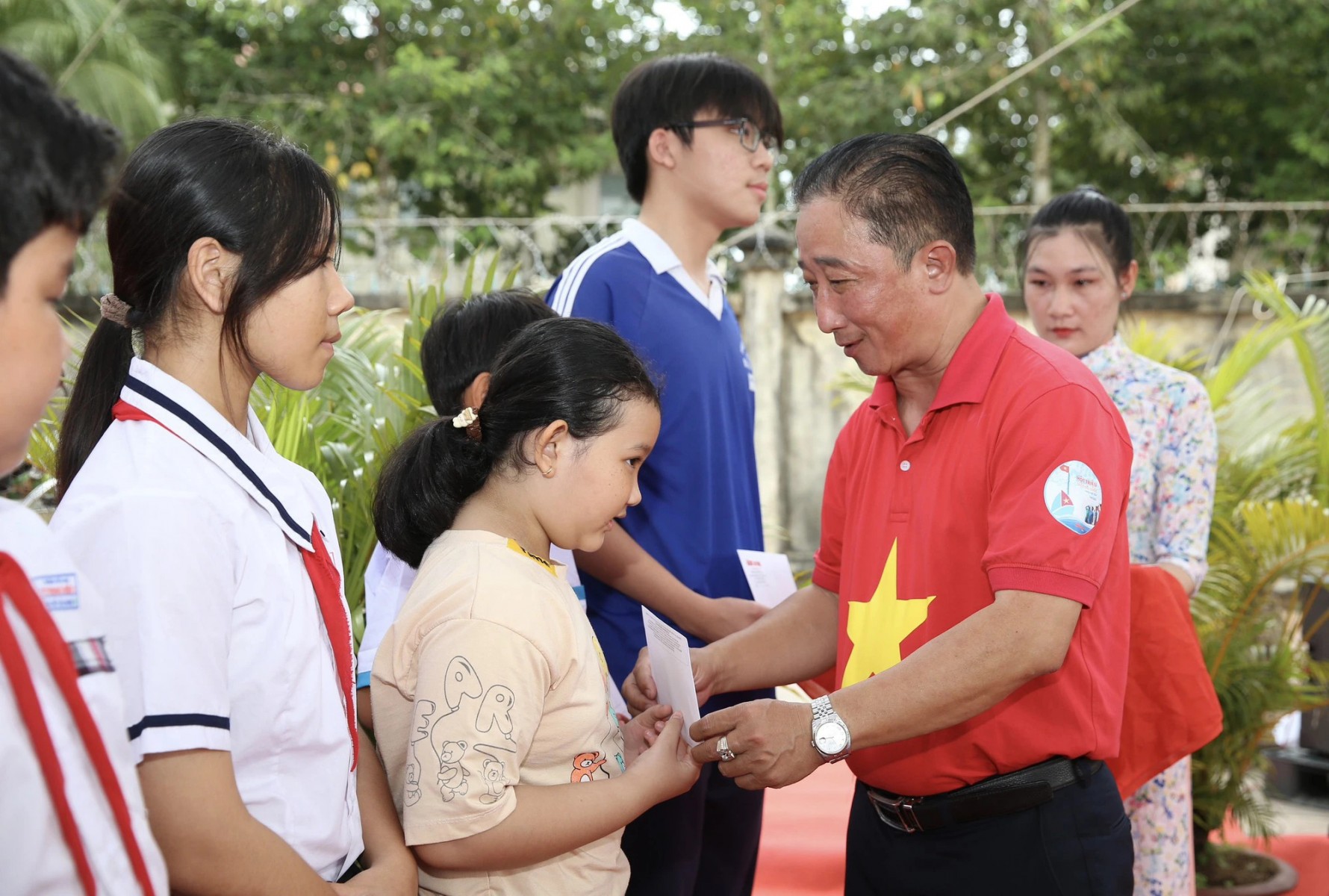 Phó Tổng Biên tập Báo Người Lao Động Bùi Thanh Liêm tặng học bổng và nhắn nhủ các em học tập tốt