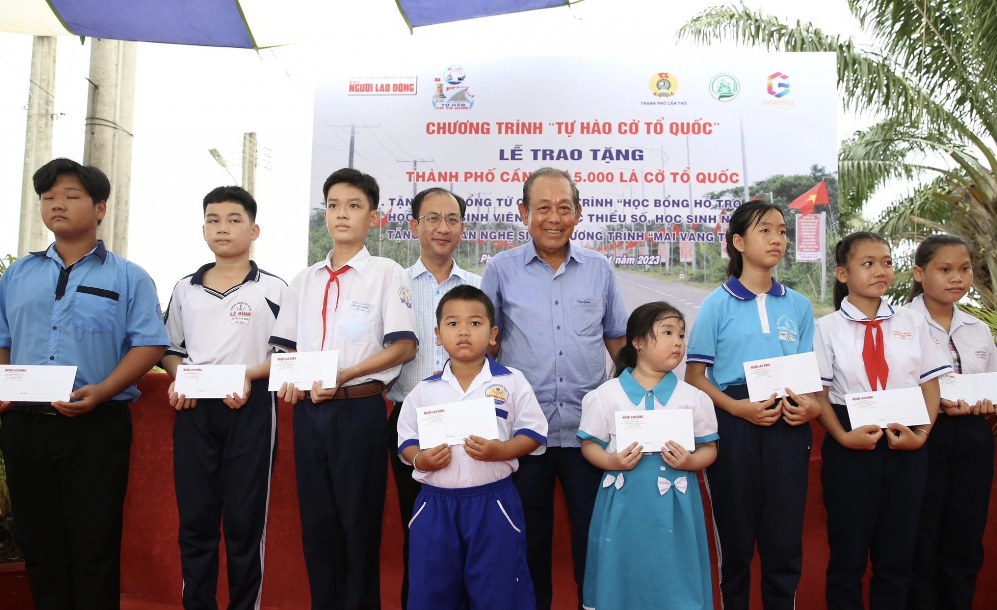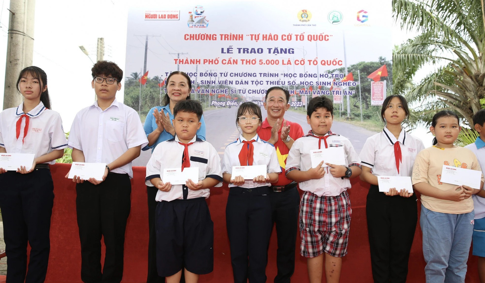 Như vậy, tính đến nay, Báo Người Lao Động đã trao 15.000 lá cờ để thực hiện các công trình "Đường cờ Tổ quốc" và trao học bổng, suất hỗ trợ kinh phí học tập tổng cộng 300 triệu đồng cho học sinh ở TP Cần Thơ.