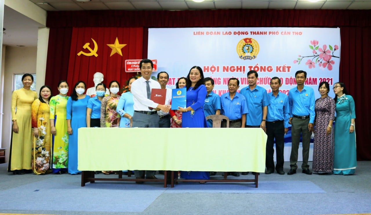 Trong Hội nghị, LĐLĐ TP Cần Thơ cũng ký kết chương trình phúc lợi cho đoàn viên với Tập đoàn Agape, nhằm hướng tới chăm lo tốt hơn cho đoàn viên và người lao động năm 2022.