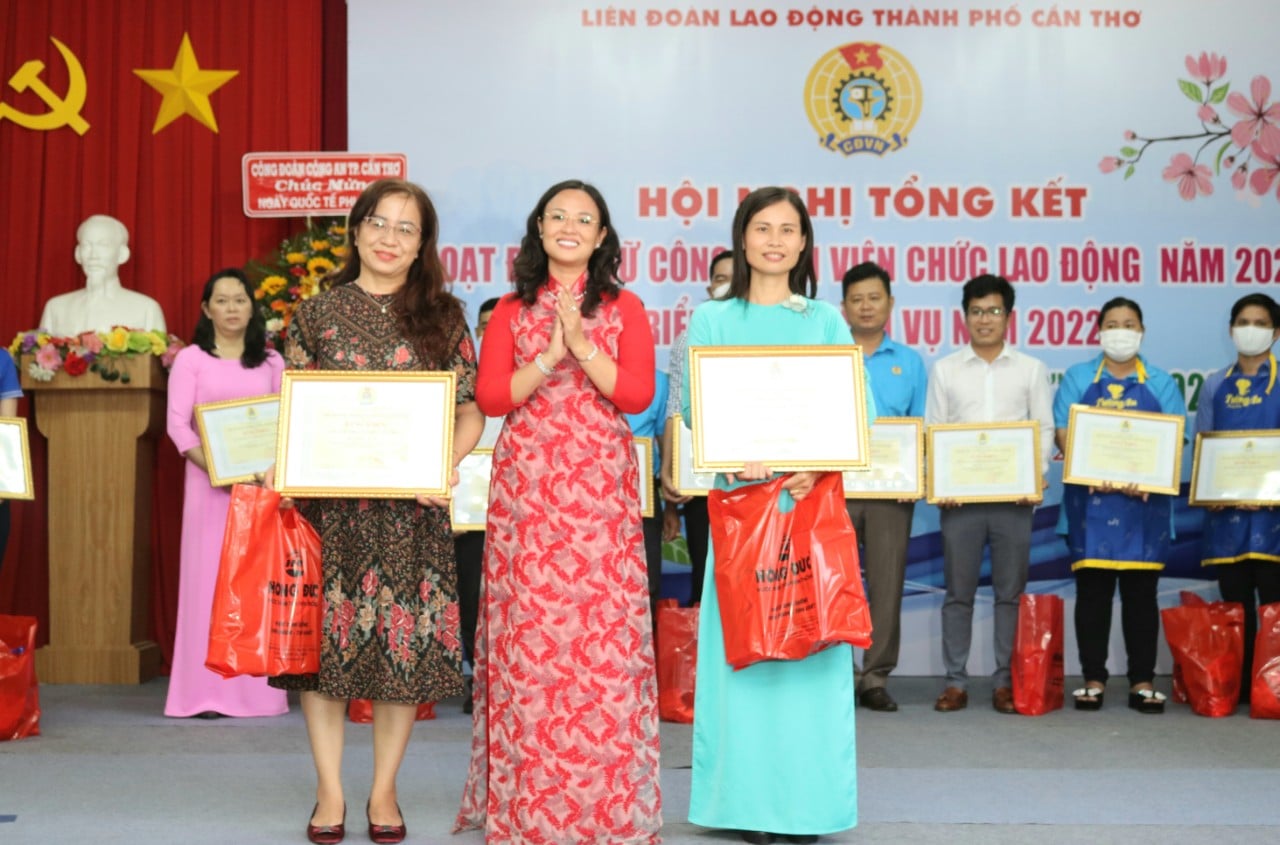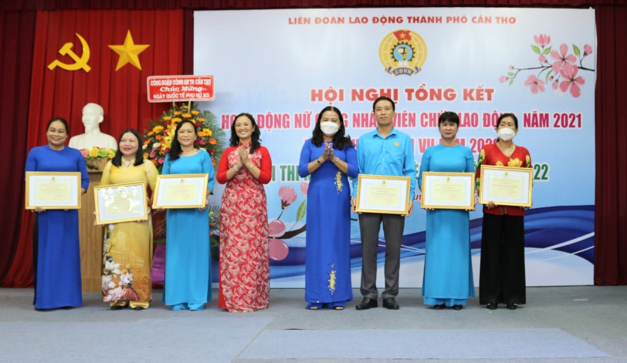 Bên cạnh đó, LĐLĐ TP Cần Thơ đã trao khen thưởng 07 tập thể có thành tích xuất sắc trong phong trào thi đua “Giỏi việc nước, đảm việc nhà” năm 2021.