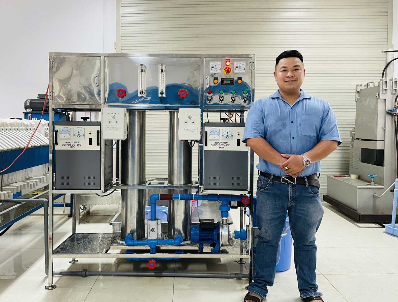 Công trình “Tích hợp hệ thống trao đổi electron nâng cao ORP - vào hệ thống RO” của anh Hùng giúp mang lại nhiều hiệu quả kinh tế - xã hội. Ảnh: NVCC