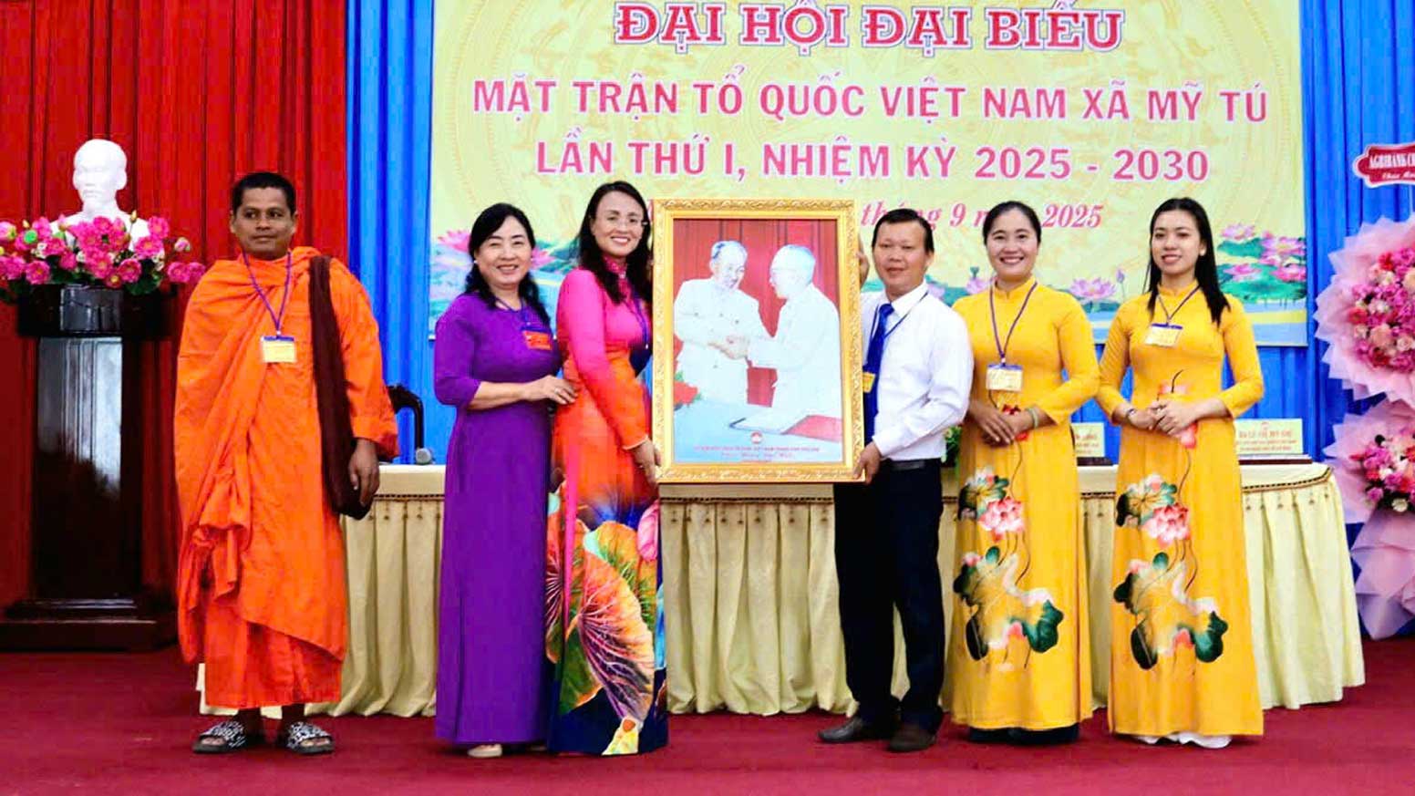 Ban Chấp hành Đảng bộ Mặt trận Tổ quốc xã Mỹ Tú tặng bức tướng cho Đại hội.