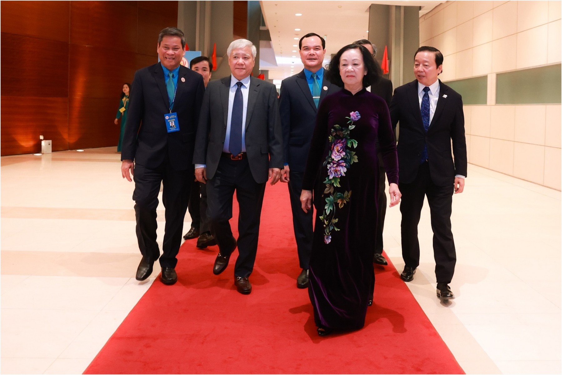 10h04: Ủy viên Bộ Chính trị, Thường trực Ban Bí thư, Trưởng Ban Tổ chức Trung ương Trương Thị Mai; Bí thư Trung ương Đảng, Chủ tịch Ủy ban Trung ương MTTQ Việt Nam Đỗ Văn Chiến; Ủy viên Trung ương Đảng, Phó Thủ tướng Chính phủ Trần Hồng Hà; Ủy viên Trung ương Đảng, Phó trưởng Ban Tổ chức Trung ương Nguyễn Quang Dương đến dự phiên bế mạc đại hội.
