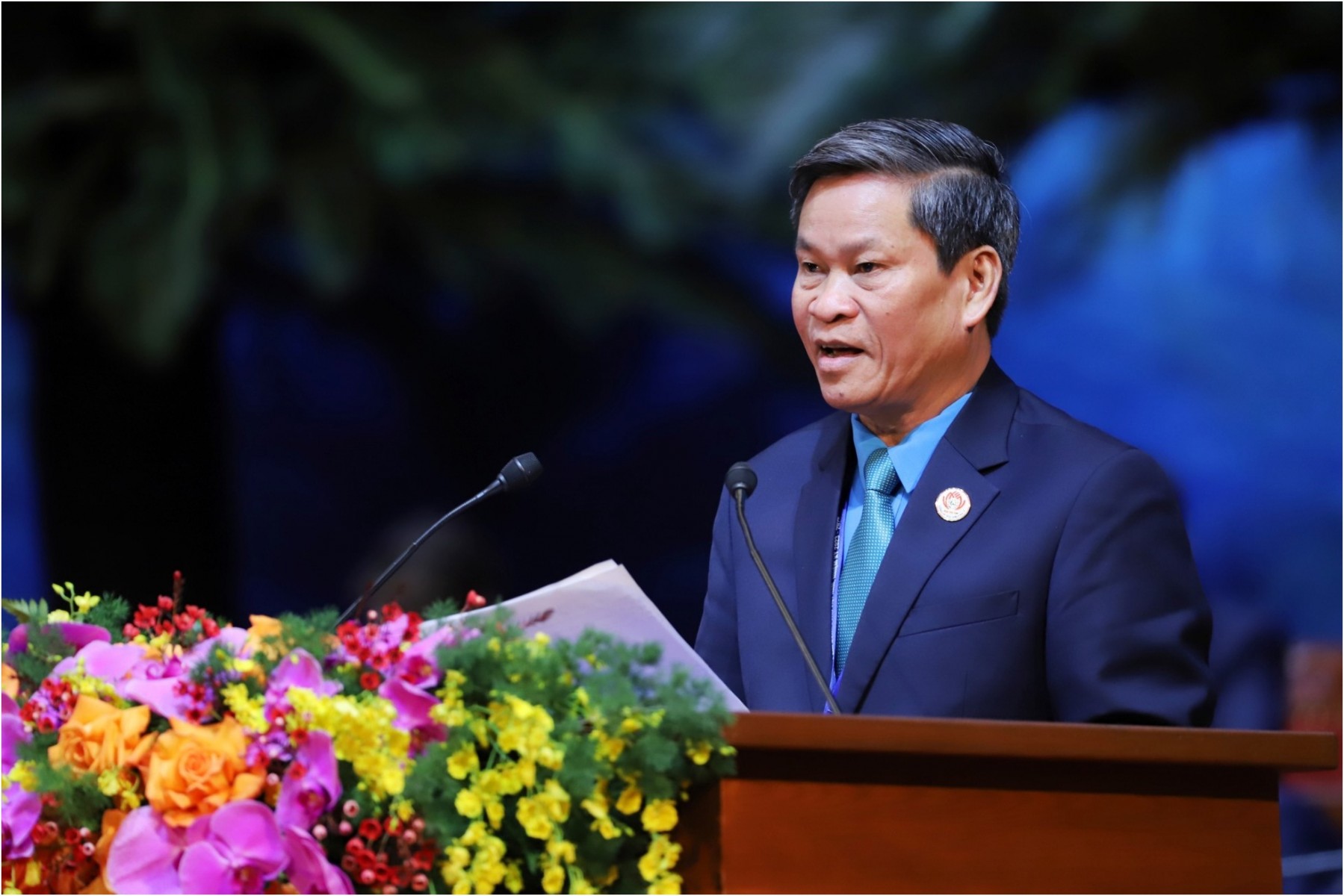 11h05: Chủ tịch Tổng LĐLĐVN Nguyễn Đình Khang đọc diễn văn bế mạc Đại hội.